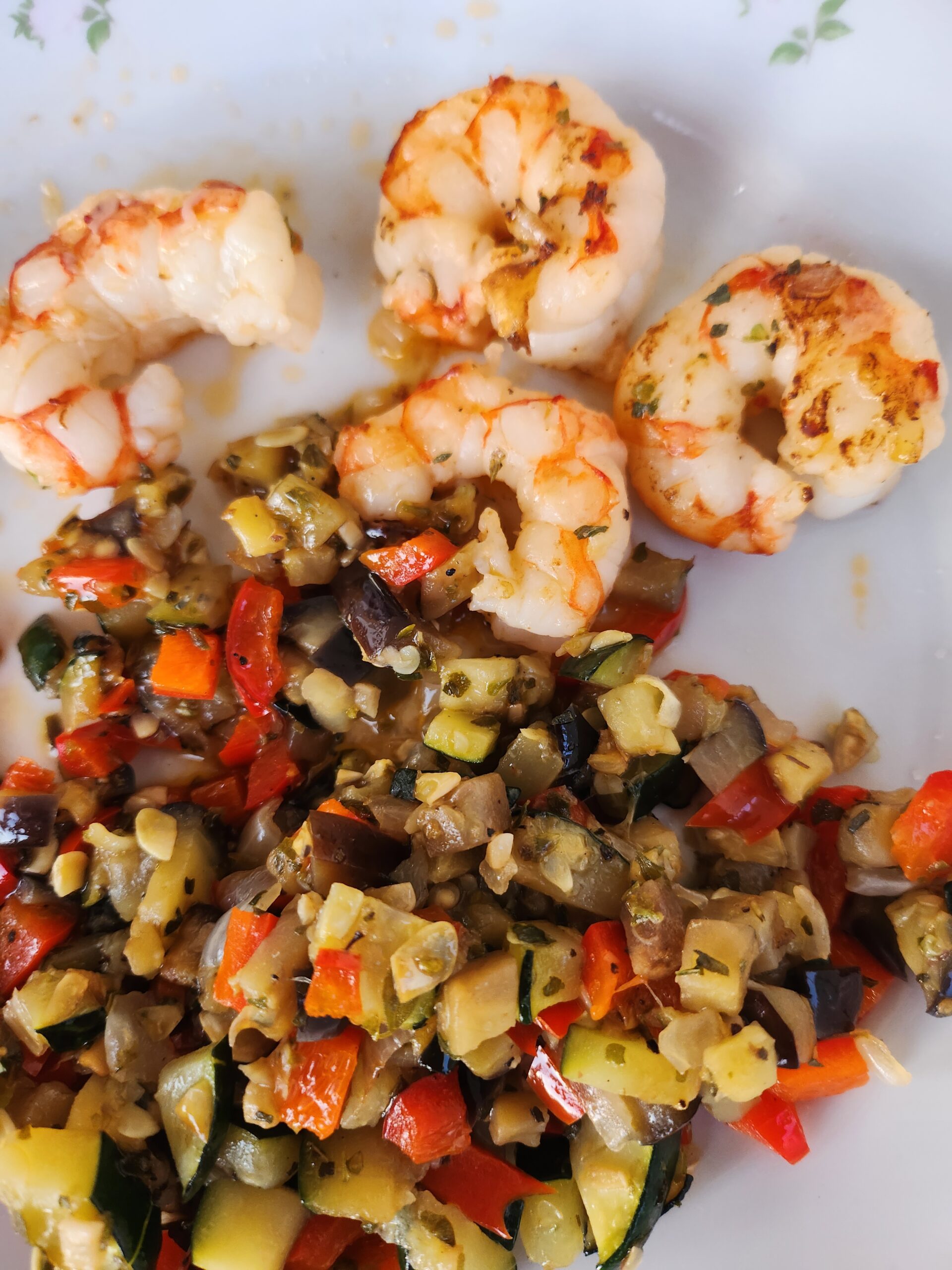 We hebben vanavond in “Ons Paradijs” gegeten. “Grote garnalen met fijngesneden ratatouille” stonden op het menu. De keuken nodigt echt uit om er iets lekkers van te maken.